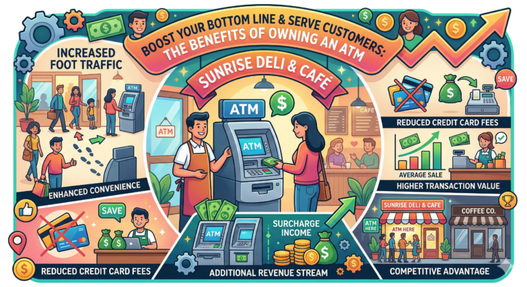 Owning an ATM at your small business is a smart investment that can deliver tangible benefits. From increased foot traffic and enhanced customer convenience to reduced transaction fees and additional revenue, the advantages are clear. With user-friendly features and robust security, small business ATMs are designed to complement your operations and contribute to your business’s success. Consider adding an ATM to your establishment and start reaping the rewards of this valuable addition.